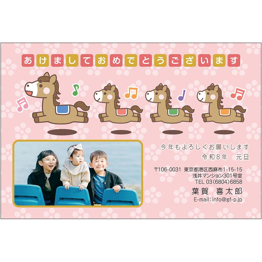 2026午年用の年賀状デザインです。インクジェットプリンターなどで、はがきに印刷してお使いください。
