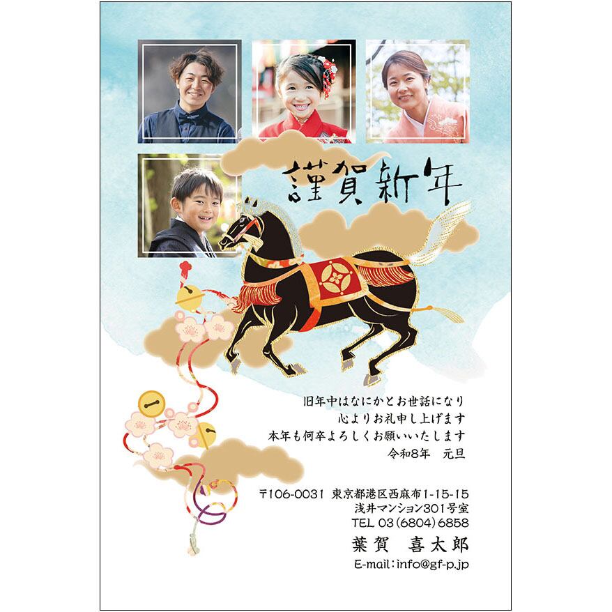 年賀状 , 午年 , うま年 , うまどし , 馬 , 2026年 , デザイン , ダウンロード ,写真を入れるタイプ , 和風 , A0341 , DF01
