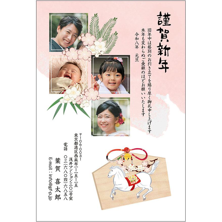 年賀状 , 午年 , うま年 , うまどし , 馬 , 2026年 , デザイン , ダウンロード ,写真を入れるタイプ , 和風 , A0341 , DF01